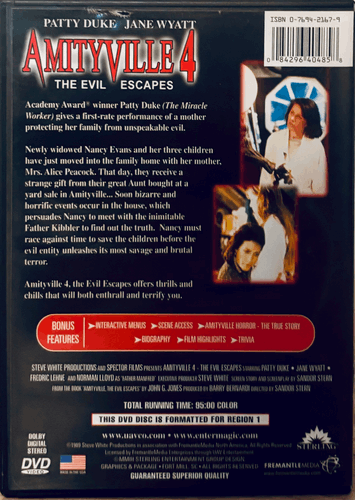 Amityville 4 – The Evil Escapes (DVD 2003) Horror, Patty Duke, OOP 1989 Sterling delivers the perfect solution. This rare and out-of-print DVD brings an unforgettable horror experience right to your collection, ensuring you never miss out on this cult favorite.