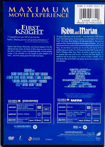 - Two full-featured discs containing both First Knight and Robin and Marian, allowing you to enjoy two epic stories in one set.
